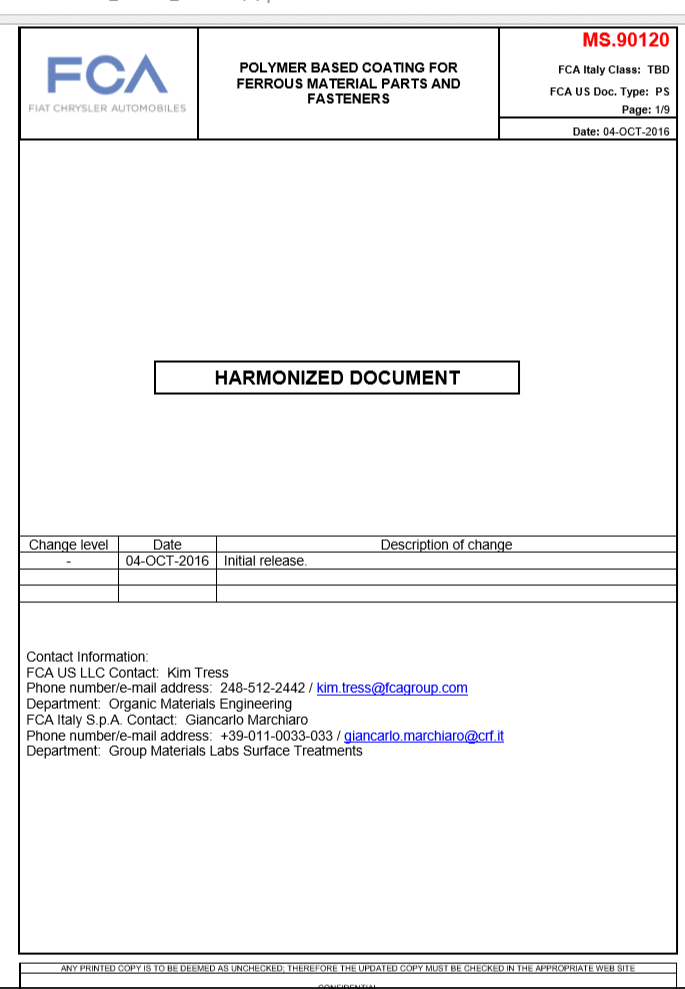 Phosphating replacement and Zinc Plating enhancement for critical fasteners in an innovative waterborne dry-to-touch lubricated polymer