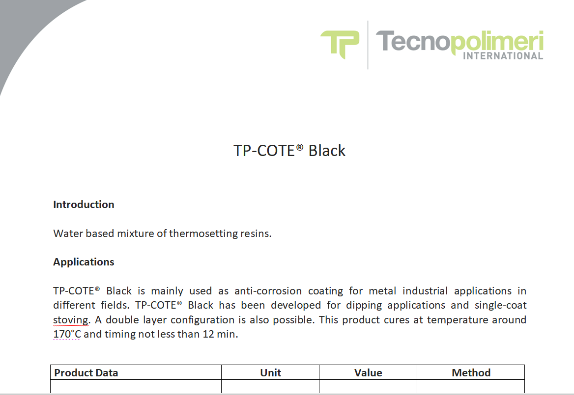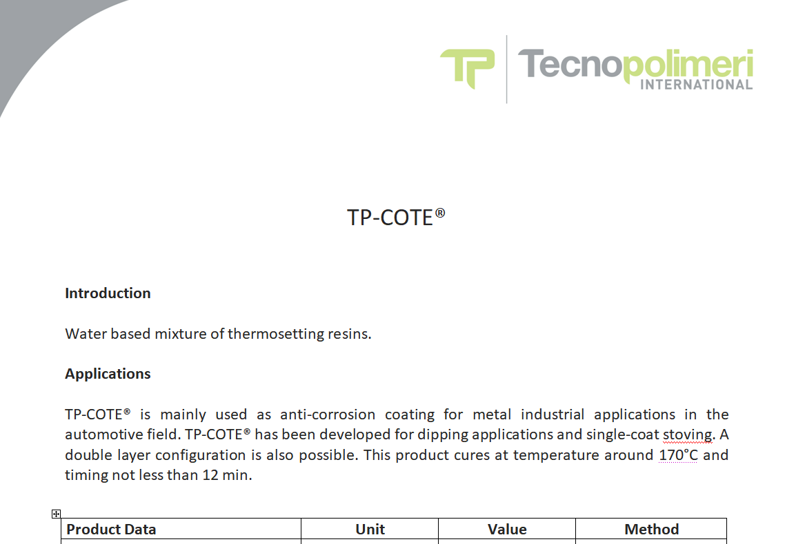 applications in the automotive field. TP-COTE® has been developed for dipping